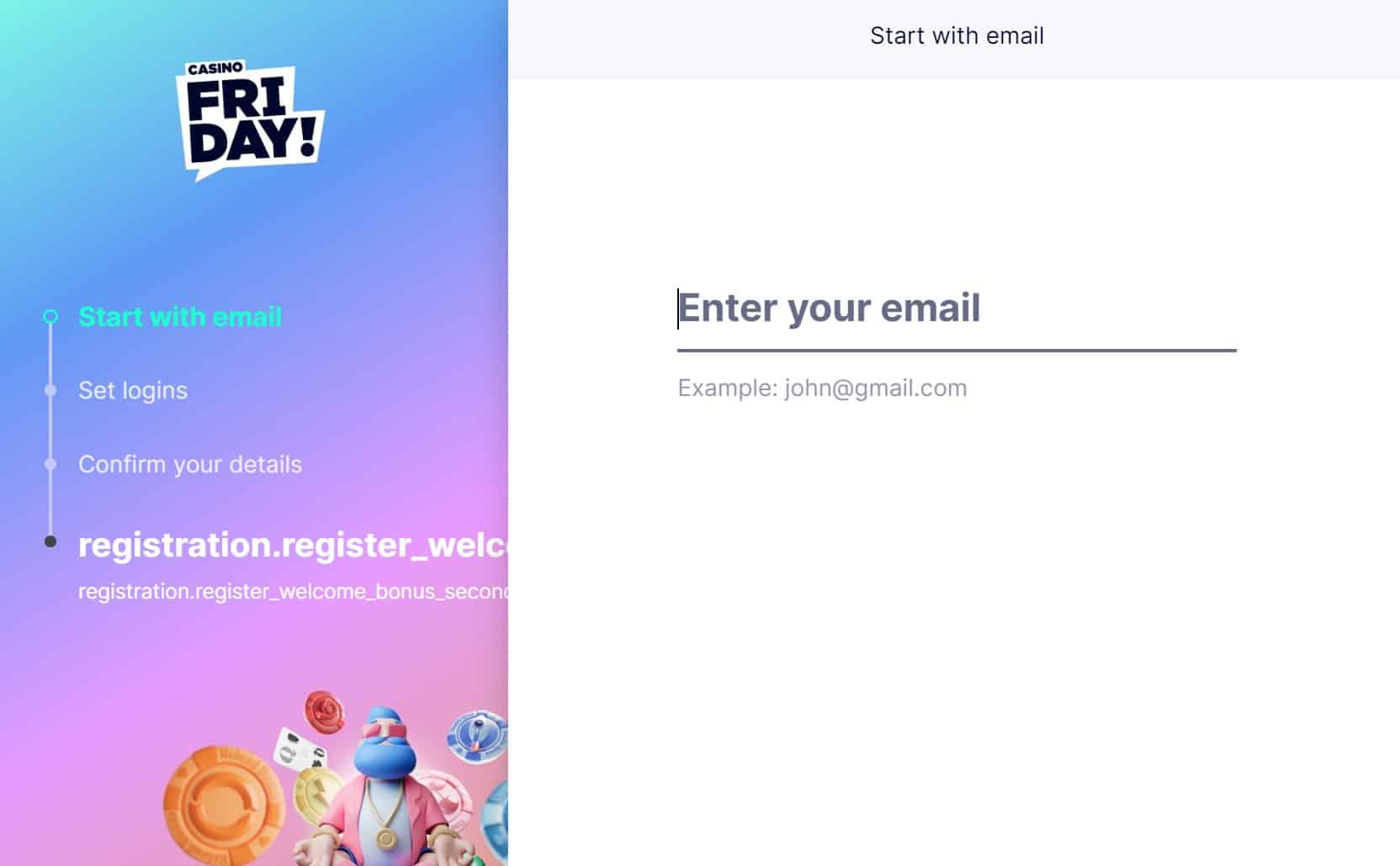 A regisztráció ezúttal sem bonyolult, sőt még az sem nehezíti meg, hogy a Casino Friday esetében ezt VPN használatával kell elvégezni.