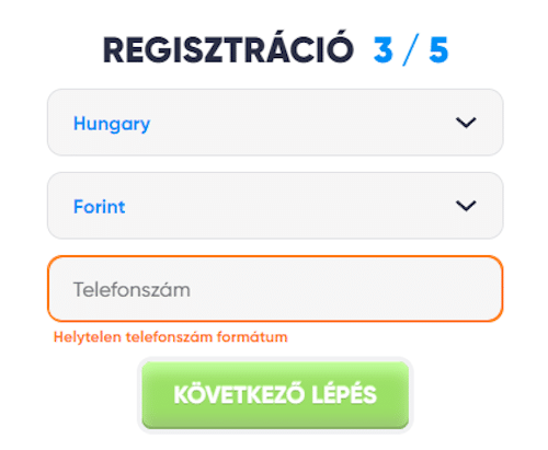 Add meg az országot, pénznemet és telefonszámod
