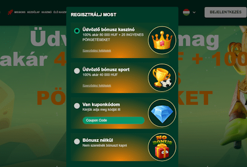 | Sportfogadási bónusz | 100%-os befizetési bónusz akár 40 000 HUF-ig |
