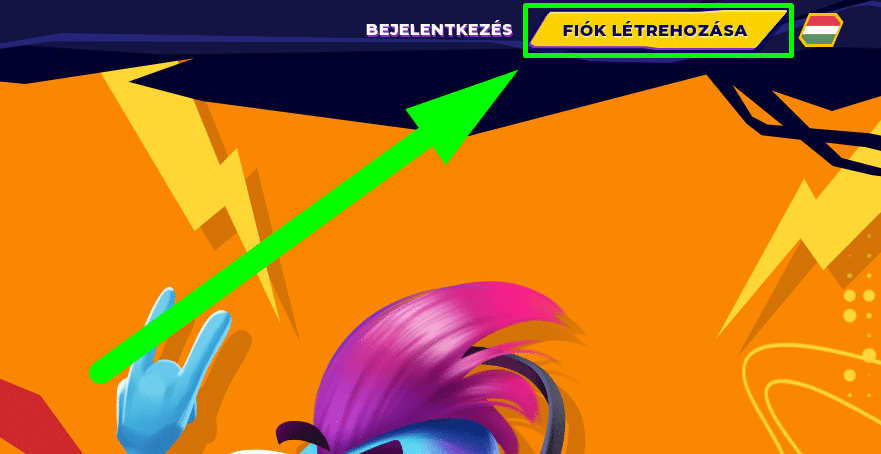Kattints a Fiók Létrehozása gombra, a jobb felső sarokban!