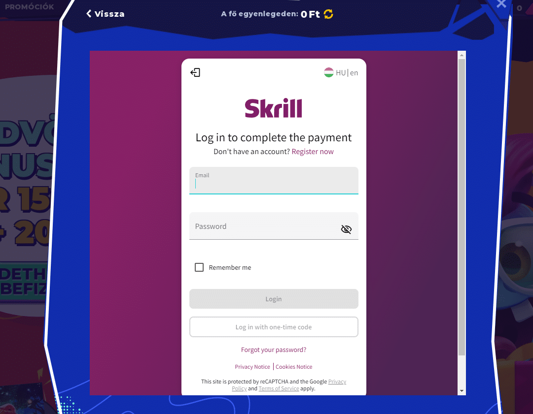 | Skrill | 5.000 Ft – 1.000.000 Ft | Azonnali | 5.000 Ft – 1.000.000 Ft | Azonnali | 0% |