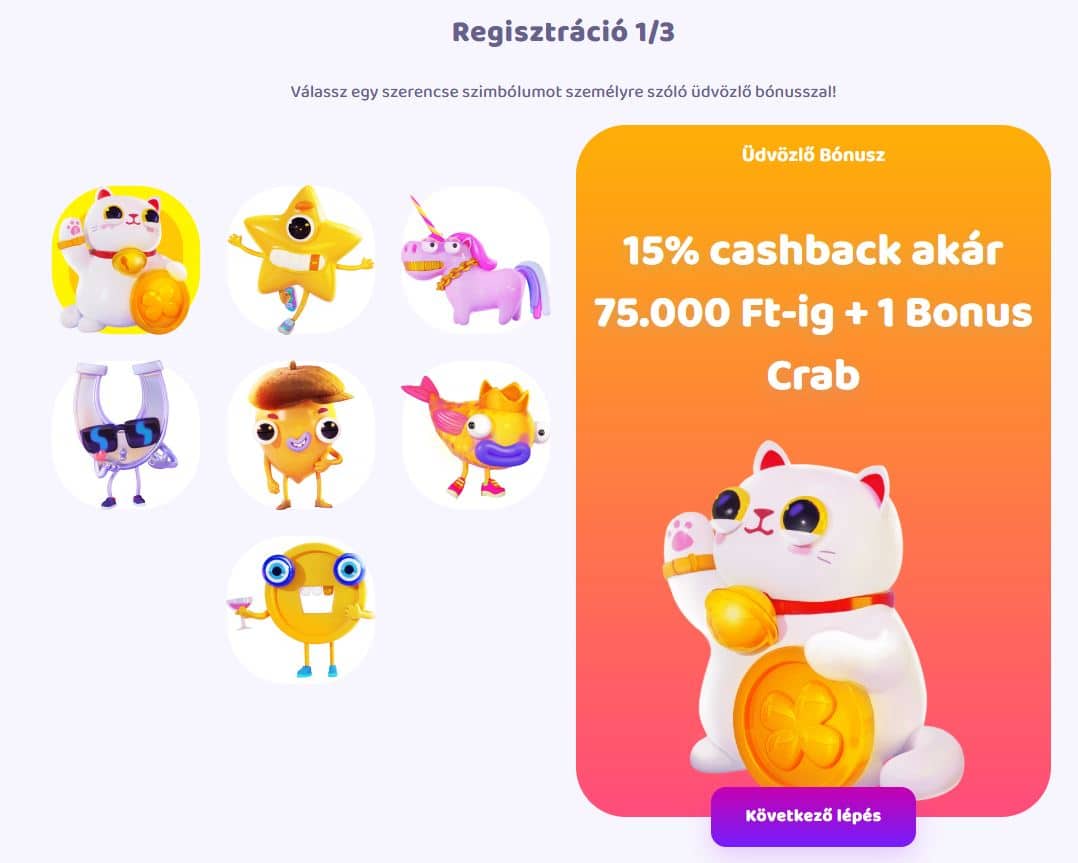 Válaszd ki a neked leginkább megfelelő üdvözlő bónuszt a megjelenő ajánlatok közül. A rendszer több opciót kínál fel, így egyszerűen eldöntheted, melyik jutalom illik legjobban a játékstílusodhoz és preferenciáidhoz.